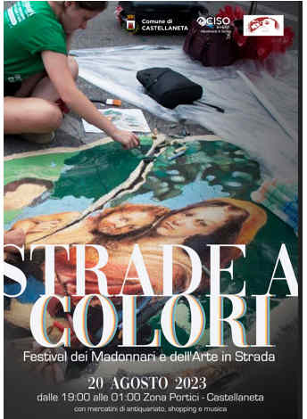 Domenica 20 agosto 2023 le vie adiacenti ai portici di Via San Francesco a Castellaneta ospiteranno la manifestazione “Strade a Colori”, festival dei madonnari e dell’arte di strada. La manifestazione, come prima edizione, vedrà la partecipazione di oltre venti madonnari che esporranno le loro opere artistiche, insieme a numerosi artisti locali che anche loro esporranno le proprie opere.